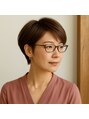 明るめブラウンのマッシュショートで知的な雰囲気を演出したミセススタイル。髪質改善超高濃度水素トリートメントでツヤとまとまりを実現。