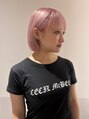 ブリーチ2回ベースのペールピンク◎色落ちはミルクティーっぽく落ちてくれます!カットは顎ラインのシンプルボブ。