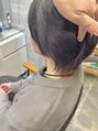 首元がっスッキリと見えるような、ショートウルフ。インナーかラーにくすみ感のあるラベンダーを入れて、立体感のある仕上がりに。暗めの色でも、ブリーチベースなので、目立たない中に単調に見えないようになっています。