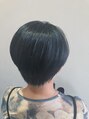短めのショートスタイルブルーブラックのお色でクールなイメージに。