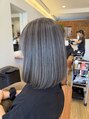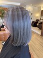 ロブ(ロングボブ)×白髪ぼかしハイライトグレイヘアに移行していくにあたり白髪が集中してる所にハイライトをデザイン。根元は白髪染めなしで薄めにぼかしています。
