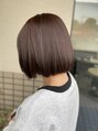 柔らかなアッシュグレージュ☆顎ラインの切りっぱなしボブ