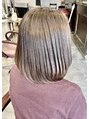 肩につく伸ばしかけショートボブです。カラーは明るめ白髪ぼかしマットグレージュです。くせ毛多毛なので縮毛矯正してますが髪を絶対傷ませない髪質を再生させる水素TRで艶めき美髪にしました。