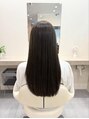 マット系カラーで赤みを消し、ダークトーンでも透明感◎長めの前髪は毛流れを意識してカットしています。