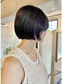 【気に入ったスタイルはブックマークをしていただくと便利です】カットは短めのコンパクトボブ。前髪は長め設定でフェイスラインにレイヤーを入れて♪後れ毛にもなる、耳にかけても可愛いスタイルです。[薬院/警固]