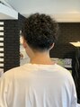生え癖が広がりやすい直毛に強めのパーマを施しました。ハチが張って後頭部も潰れやすい骨格なのであえて強めのパーマで簡単に手入れできるようにしました。