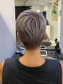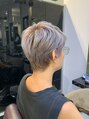 以前にブリーチオンカラーをした髪に今回はホワイトシルバーカラーをのせました。ベリーショートにとても似合ってます!