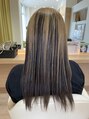 動くたびに表情が変わり、立体感と遊び心をプラス。さりげなく個性を引き出したい方におすすめのデザインです。アンブレラカラー似合うストレートでスッキリとしたカットに仕上げました。