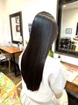 まとまりやすいよう重さを残したシルエットに、オーガニックカラーで暗めのグレージュ系にお染めいたしました。