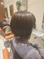 カラーの履歴で暗くしていた時期があり色落ちした時にムラが少し出ていたのでなるべく明るさは変えず、ムラを無くしながらツヤのあるアッシュ系のお色で染め、毛先の重さを軽くしながらくびれのあるレイヤーボブにしました。