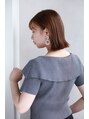 髪の内側にレイヤーを入れているので、タイトな外ハネボブにマッチします。