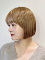 毛先を揃えた切りっぱなしボブで、シンプルながらも洗練された印象に。透明感のあるベージュカラーが柔らかさを引き立て、大人っぽさと可愛さを両立できます。