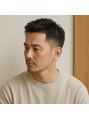 サイドをしっかり刈り上げ、トップは短めで整えたショートスタイル。前髪を横に流して自然に収め、清潔感と爽やかさを兼ね備えた大人の髪型。