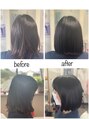3枚目はbefore afterです。髪が細く傷みやすく絡まりやすいので肩につくくらいにカット。良いカラー剤と良質なシャンプートリートメントがお勧めです!
