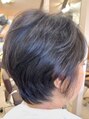 大人女性の耳かけショートレイヤー。トップはふんわりレイヤーで動きのあるスタイルに。6トーン・モカブラウンカラーとトリートメントでツヤのあるまとまる仕上がりに。