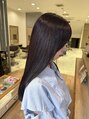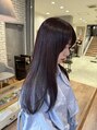 落ち着いた暗髪の中に、やわらかく透けるラベンダーをプラスしたカラー。光の加減で印象が変わり、大人っぽさと女性らしさを両立します。