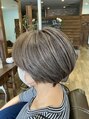 2ミリ位のハイライトを顔まわりと髪の表面にいれて、イルミナカラーで明るいグレージュをかぶせました。