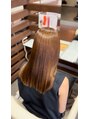 インナーブリーチ+縮毛矯正履歴ありのお客様への全体縮毛矯正。癖が収まると共に、艶感と手触りが格段に向上します^ ^