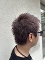 刈り上げると白髪などすぐに出るので刈り上げず長さを少しおいてシルエットを作りました。ブリーチに、パールラベンダーをオン。退色がキレイになります。
