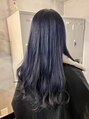 ブリーチ×2でベースを赤味が残らないように明るくしてから濃いめのブルーバイオレットを乗せる事で綺麗なカラーの発色になります。
