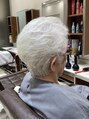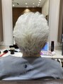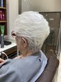 アウトラインをすっきりしたグレーショートパーマスタイルです。トップのボリューム感とサイドは流れるようにパーマをかけています。ナチュラルドライでもボリュームは出ますけどカーラーで巻くと仕上がりがエレガントになりますよ!