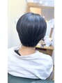 前回のショートスタイルが周りから評判だったことで同じイメージのスタイルに。襟足をさらにシャープにしてスッキリみせるようにしました。