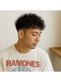 サイドをしっかり刈り上げ、トップにパーマをかけたツーブロック。束感と動きで立体感を強調し、爽やかで都会的な印象を演出。