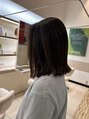 切りっぱなしボブスタイルナチュラルだけどどこか抜け感のあるスタイルです。髪の毛も結べる長さなので、毎日簡単に手入れできます♪