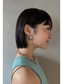 顎下でパツッとラインを出しておさまりの良いミニボブスタイル♪前髪はワイドバングで毛先中心にバームをつけ、濡れ感を出し今っぽくトレンド感のあるスタイルに。耳にかけもみあげの毛を出すことで顔まわりの印象を明るくよりタイトな印象に。