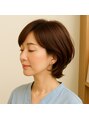 自然なブラウンにほんのりチェスナットのハイライトを加え、落ち着きのある艶やかな仕上がりに。大人女性の上品さを引き立てる柔らかなレイヤーボブです。