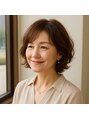 柔らかなパーマをかけたショートボブ。毛先の動きが優しい印象を与え、大人女性の魅力を引き立てます。髪質改善超高濃度水素トリートメントで艶やかに仕上げました。