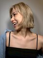 ブロンドベージュ ブリーチ ハイトーン 切りっぱなしボブ