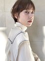 少し前下がりのショートボブです。少し前下がりにする事で顔をシャープに見せる効果があります。耳掛けして2wayでお楽しみ頂ける飽きないスタイルになっています。