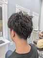 アップバンクのツイストスパイラルパーマです。ラフな質感だけど前髪を上げてて爽やかさも◎