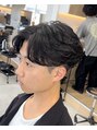 メンズカット+フェザーパーマ¥11500[万代/センターパート/ツイストパーマ]