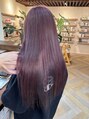 大人可愛いグレーピンクロングは、顔まわりレイヤーで動きをプラス。イルミナカラーで表現するまろやかな赤味が上品さを引き立てます。髪質改善トリートメントで、触れたくなるようなうる艶髪に仕上げます。
