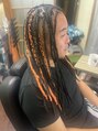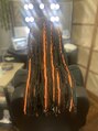 渋めなダークグリーンのエクステが入っています。オレンジのポイントブレイズも、ランダムでオシャレ!