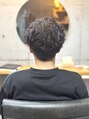 2種類の巻き方をミックスしたメンズパーマ。軽めのツーブロックにして、動きをつけつつ広がりすぎないようにパーマをかけています。少しウェットにしてからムースをつけるらくちんスタイルです。