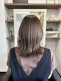 肩下のレングスに軽やかなレイヤーを入れたスタイル。ストレートタッチでまとまり感をだしつつ、毛先には程よい動きを残す事でナチュラルで柔らかい雰囲気に。髪を伸ばしてるけど、重たく見えたくない方にオススメ♪