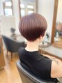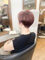レディースハンサムショートです。耳に少しだけかかっています。レッド系のカラーをしています。