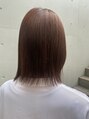 長めのレイヤーボブです!切りっぱなしボブにお顔まわりはレイヤーが入っています!前髪は伸ばしている途中なので流しやすいようにカットしました。