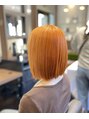 ブリーチベースに高発色のオレンジをオン。ツヤと透明感を引き出しツヤのあるビビッドなオレンジカラーで、肌を明るく見せつつ、個性もしっかり出せるスタイルに。シンプルなボブに合わせることで派手すぎず、上品さもキープできます。