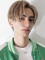 ハイライトミルクティーベージュツーブロックメンズマッシュ