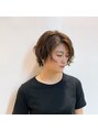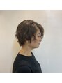 【cut】バングは長めでベースカットは長めのハンサムショートパーマの動きが生かせるように少しレイヤーを入れておく。【perm】動きを出したいハチ上に縦巻きでリバース・フォワード巻きをMIXさせる【color】パープルを加えたラベンダーブラウン