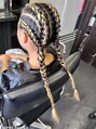 エクステメッシュ入りのボクサーブレイズアレンジ☆4本のコーンロウからのブレイズ2本に 毛先はエクステメッシュで長さを出して仕上げました