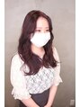 紫系のダークブラウンカラーで、赤黒い艶髪色にしています。韓国風の雰囲気がお好きな方におすすめの艶感カラーです◎カットは8センチばっさりカットして毛先に厚みを出して、顔まわりのレイヤーで動きのある小顔カットにしています。