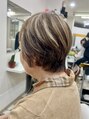襟足をタイトにカットして、後頭部にパーマをかけ。気になる所をボリュームを出した、キレイな形のスタイルです。
