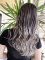 地毛風のダークトーンをベースに、ハイライトで立体感をプラスしたグレージュスタイル。根元はやや暗めに残して自然なグラデーションに仕上げ、毛先にかけて柔らかく透ける色味が魅力。