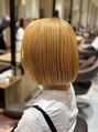 まっすぐなラインでそろえたボブですハイトーンなのも相まって可愛い仕上がりになりました!オイルを付けるのがおすすめです。