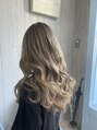 ハイトーンのベージュカラーです(^^)光に当たった時の透明感が抜群です!巻いてもストレートでもかわいいカラーです(^^)